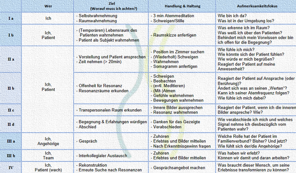 • Wenden Sie - wann immer möglich - fokussierende Methoden an, wie z.B. Meditation, um Raum zu schaffen für die Begegnung mit einer stillen Person.